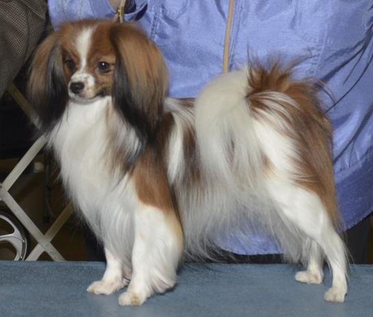 Robbie is Louann's little heart dog. Robbie certainly made his presence felt at the U.S. National in Florida in 2018. He went down and conquered. He started off his winning streak on Monday as he went Best Phalene in Specialty. On Tuesday he went Best Phalene and Reserve Winners dog. Wednesday saw a repeat of the theme as he went Best Phalene. Thursday was the start of the Nationals and he went Best Opposite in sweepstakes. Just to finish up his week he went Winners dog on Friday and Best of Winners on Saturday, followed by best phalene. Too much excitement for two very proud breeders. He did one more show before leaving the U.S. and that was the papillon specialty in Seattle. Again, he had a great winning time.